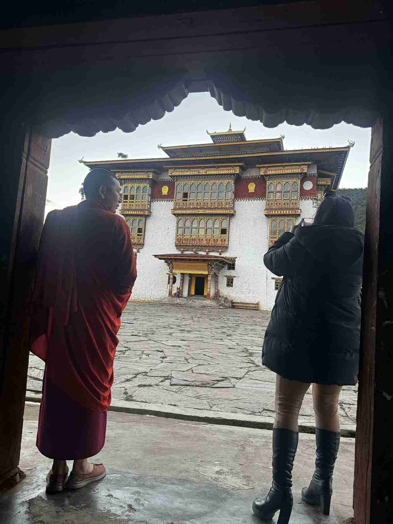 Chorten Nyingpo is a four-storeyed temple built in traditional Bhutanese style, complete with whitewashed walls, ornate wooden carvings, and a tiered golden roof. The interior, however, holds its greatest treasures.